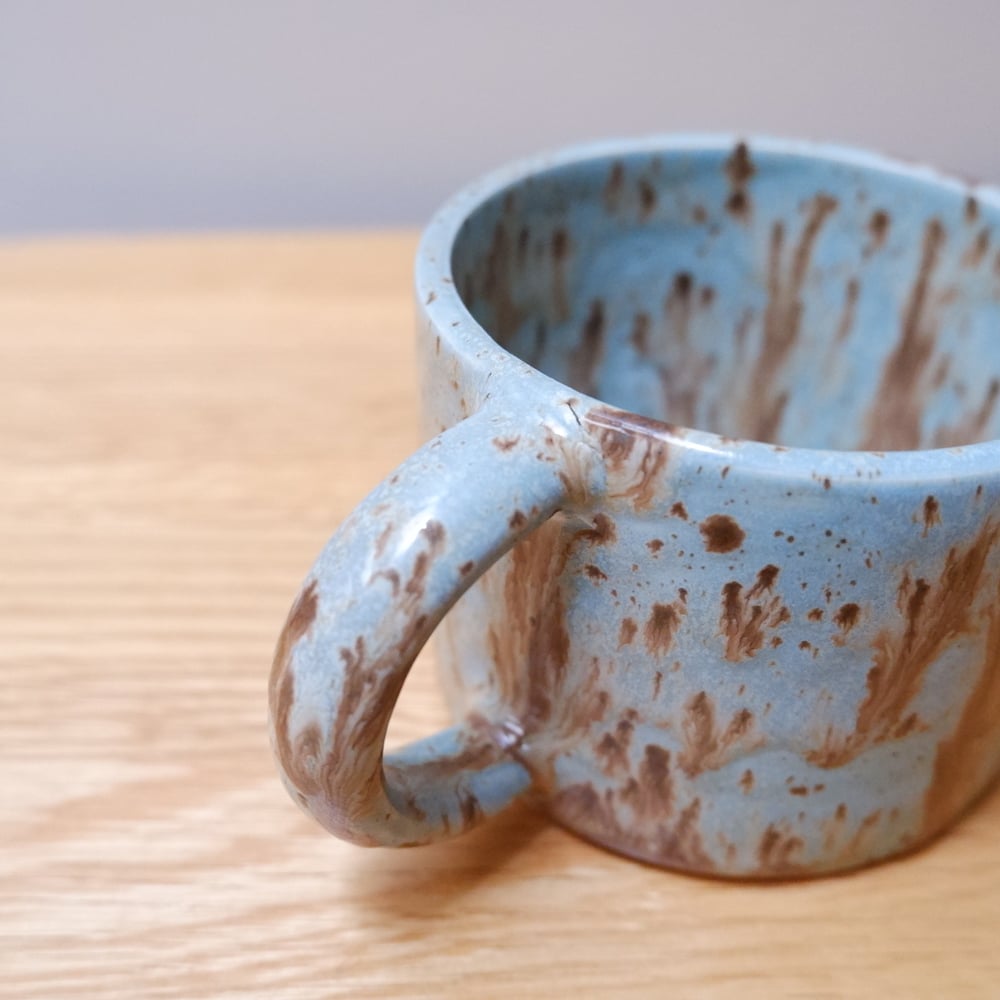 Small mug with a surface crack on top of handle. Does not affect the structural integrity of the mug.